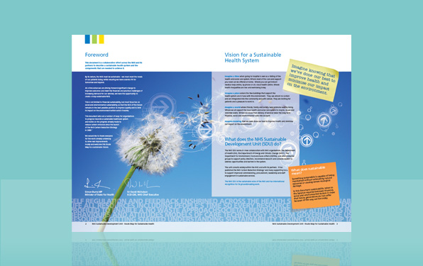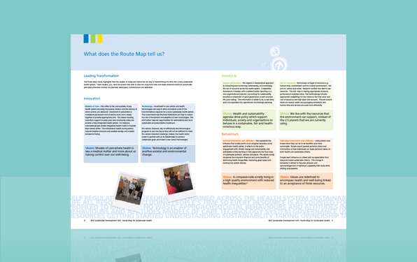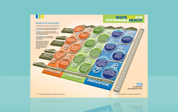 Once again the NHS came back to us, to design and produce a 12pp document for their Sustainable Development Unit division. The document included various different graphs and charts that needed illustrating, including the main "Route Map" illustration.