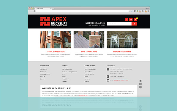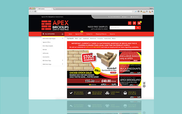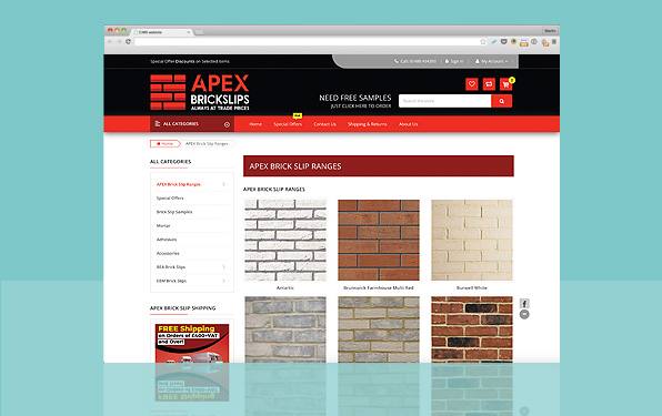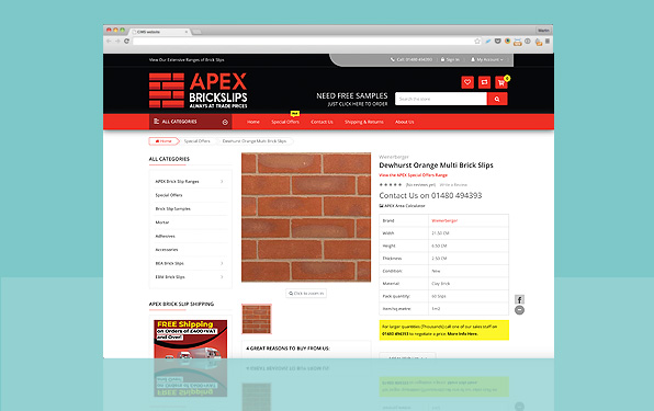 From the design of the company logo and overall branding, through to building the actual website, M J Webb Associates worked closely alongside Apex Brickcutters. The website was built on Big Commerce, allowing the company to use their e-commerce platform to sell their brick slips across the whole of the UK.